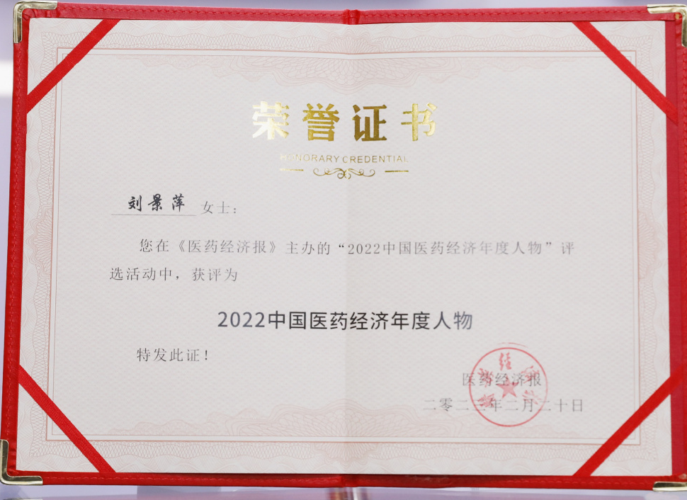 yd12399云顶集团药业集团董事长刘景萍当选“2022中国医药经济年度人物”